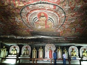 ダンブッラ石窟寺院。 ヒヤッと裸足で石の上を歩く気持ちよさとともに、第1窟から順番に見て回りました。 スリランカの人々の仏教信仰は、それはそれは敬虔で、祈っている姿は神々しささえ感じるほどでした。 |