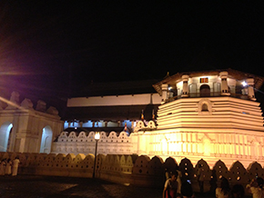 仏歯寺。 仏舎利は1日に何回か見ることができるそうなのですが、我々は18時30分の回に並んでみました。 このお寺の作りも美しく、そして参拝にこられているスリランカの人々の祈りの美しさに夜もふけていくのでした。 |