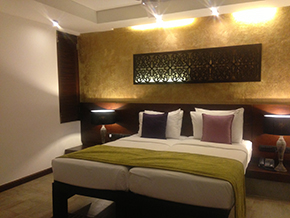 ジェフリー・バワ建築 ここは、カルタラと言う地区の入り江の突端に位置するホテルで、ホテルの右も左も海というか、水に囲まれたのんびりしたところでした。 スリランカを代表する建築家・ジェフリー・バワが設計したこのホテルは、細部にまで気を使っていて、とても心地が良いホテルでした。まわりの環境を活かした、屋内と屋外をつなぐさりげない演出の連続に驚きまくりのホテルでした。 |