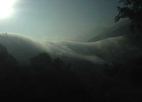 | カトマンズからポカラへ移動中のバスの中で、幻想的な景色に出会いました。 山を越えてくる雲・霧の大きな流れ。 圧倒的な迫力で迫ってきました。 ---ところで、今回のツアー。行きのフライトの時に、帰りのフライトが「キャンセル」になるかもしれないと聞いていたのですが、現地で案の定「キャンセル」になったと。 原因はカトマンズでちょうど開催されていた「南アジアの首脳が集まる国際会議」でした。 昼間、カトマンズ上空は飛行禁止となり、全てのフライトがキャンセル=我々の帰りのフライトもそれに当てはまったと言うわけです。 日程を大幅に変更し、カトマンズを朝早く脱出しなければ、デリー→成田の便に乗れないので、予定を色々と入れ替え、ネパールを半日早く出て、その代わりその半日をインドのデリーで過ごすというツアープランに変更となったのです。--- カトマンズ→ポカラのバス移動は決してらくちんなもんではありませんでしたが、道路状況や人々の営み、街の変化などをゆっくり見ながら次の地へ行くというのは旅の醍醐味のひとつですよね。 ケーブルカーで頂上の寺院に参拝に行くことで有名な 「マナカマナ」と言うエリアでお昼休憩をしました。 山と川に囲まれてのんびりと食べるお昼ごはんはとても美味しかったです。 まもなくポカラに到着。今回のホテルは、「ポカラグランデホテル」。 敷地内も素晴らしく、なんとし基地内に「ボダナート」的なものがあり驚きました♪ ポカラの空港から近いホテルだそうなのですが、とても快適な素晴らしいホテルでした。 お湯が使える時間が、午前・午後ともに5時〜10時までと決まっているところが何ともネパールらしかったです。 エントランスには、お花が♪ 赤いところが全て花のつぼみなんですよ♪ 彼らの繊細な芸術性が見えてくるなぁ〜としみじみ感動しました。 |