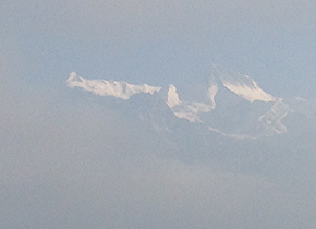 早朝、ヒマラヤが見えるといわれるサランコットの丘へ登り御来光を拝みに行きました。今回のたびのハイライトです。 この日はちょっと雲が多くかかり、御来光は中途半端にしか拝めませんでした。日も上がり観光客は次々に下山していきます。 我々は下山するということは頭の中になく、とりあえず山が拝める可能性があるうちは待ってみようということで丘の上で写真を撮ったり遊んだりしておりました。 何時間そこに居たのか?解りませんが、ガイドさんの「見えてきたよ〜」の声に、景色をじっと見る我々。 6000〜8000mの山々が見える位置というのは、我々が思う「山の頂きが見える位置」と言うのをはるかに越し、空のど真ん中に山々が登場したことに、驚き隠せず。 アンナプルナ連峰が我々の前に姿を現してくれました。 ただ、ただ、感動です。 こちらの真ん中にある山が、神の住む山「マチャプチャレ」。英名は「フィッシュテイル」とも言うらしいです。 ここには神様が居るということで、人は入山できないのです。ということもあり「前人未踏」の山。 その美しい山の姿に、言葉を失います。 ヒマラヤ山脈って、やっぱり人生に一度は自分の目で直接見てみたい。 そう思い、ネパールに足を運ばれる方も多いようですね。 一見の価値あり・・・といいますか、人間のちっぽけさと自然が織り成す何にも代えることの出来ない美しさ、強さのようなものが強烈に我々に押し寄せてきます。 ヒマラヤ山脈は、まだデカン高原に押されているらしく、年々ちょっとずつ成長しているらしいですよ。 自然のアートを猛烈にたたきつけられた瞬間でもありました。 |