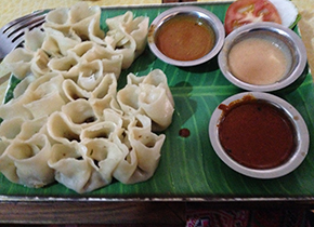 餃子やショウロンポウに似た食べ物ですが、ガイドのスシールさんオススメのお店&オススメのバフ(水牛)のモモを一人一皿食べました。・・・ぜんぜんお腹いっぱいにならない・・・ということで、みんなでお替りを。 ネパールは何を食べても美味しいなぁ〜、アジア万歳!