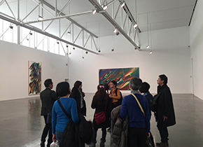 2日目は、チェルシー地区のアートをくまなく回ります! 思ったよりも寒くなく、お散歩日和となりました。 まずは、移転再オープンしたてのホイットニー美術館に向かいます。ここで、今回のアートガイドを担当いただいた山村さんと合流しました。 ホイットニー美術館では、オフィシャルのガイドを山村さんが通訳してくださりながら、現代アート作品をたくさん鑑賞いたしました。また、建築はレンゾ・ピアノ設計ということもあり、屋上などもとても快適で楽しい施設でした。 美術館のカフェにてランチをした後、ハイライン散策スタートです。古い線路を散歩道にしたそうですが、アーティストの露店があったりパブリックアートがあったりと面白いところです。日差しが心地よく休憩している人たちもいっぱいいました。 チェルシーのギャラリー地区あたりでハイラインを後にし、山村氏お勧めのギャラリーを巡ります。 それにしても、なんというギャラリーの数。そして、開放感もあり、入りやすいギャラリーが多いように感じます。 そして、結構たくさんの人が出入りしている感じにも驚き。やはり表現をする人、表現を享受する人が多いのかな?という感じもします。 意外にも、アフリカの作家、アジアの作家の展示が多かったように思いました。これからはこのエリアの作家に注目が集まってくるのかもしれませんね。。。 山村氏やギャラリストの話を聞きながら見学できたことで、そのギャラリーの立ち位置、今回展示の作家さんのことや最近のギャラリー動向など、いろいろと知れて非常に実りのある時間となりました。 さすがに歩き疲れたので、近くのデリに入りお茶をしました。その後、タクシーを使ってチェルシーマーケットに向かい、短い時間でしたがチェルシーマーケット散策をしてホテルに戻ります。 途中、ミュージカルなどを見に行く人たちは、タイムズスクエアで下車をしてナイトライフを楽しみました。 |