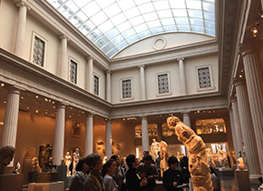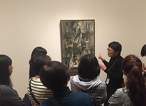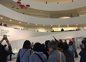 | 3日目は、もう春か?と思うほどの陽気で、コート要らず。極寒のNYを想定したので拍子抜けですが、暖かいのはありがたいことですね。 この日は、ホテルから歩いていけるMoMAからスタートです。開館ちょっと前にミュージアムショップを見て歩きます。MoMAのショップは楽しくていろいろとみてしまいますね。。。 さて、本日も山村氏のガイドで見学いたします。 MoMAのオフィシャルガイドのお仕事もされている山村氏の解説は、本当に学びが深くなり、この美術館の魅力を堪能することができます。 たっぶり2時間半ほど見学した後、近くの中華屋さんでランチを取り、5番街へバスで移動いたします。 グッゲンハイム美術館は、フランクロイドライト設計ということで、入場はせず、フロントから全体を見渡し、ミュージアムショップを楽しむ形で、次のノイエギャラリーに向かいました。 こちらは、オーストリアやドイツの作品が展示されております。クリムトの作品に息を呑みますね。 さて、そのあとはMET。メトロポリタン美術館です。 この巨大な美術館は1日あっても見て回れないほどですが、山村氏セレクトで、コンパクトに見どころをご案内いただきました。 それにしても、あるわあるわ作品の数・・・。 今回はイスラム教美術やアジア美術のエリアも少し見学しました。そのほか名画の数々を見学し、特別展も見に行きました。本日は夜も開館している日なので、じっくりと見て回れました。 山村氏には2日間たっぷりとNYのアートをご紹介いただきました。ありがとうございます! 今回参加された皆様とまたの再開をお約束して、METにて お別れとなりました。 さて、METからはホテルに戻る方、再度MoMAに戻られる方、本日もミュージカルに行く方と、それぞれのナイトライフを楽しみました。 |