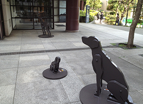 佐脇さんは、鑑賞順路にもこだわりがあります。最初に観てほしい作品である「目黒区美術館」と「大分市立美術館」の外観彫刻を入口に展示、「展覧会を鑑賞する前に、今いる美術館を俯瞰して欲しい」という意図です。「目黒区美術館」の外観彫刻は、今回の展覧会のための新作。実は、制作当初は美術館のまわりは大変木が茂っていて、とても見にくかったそうです。ご自分で高いところから写真を撮り、制作準備をされました。 |