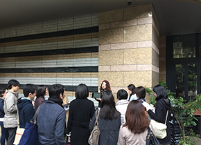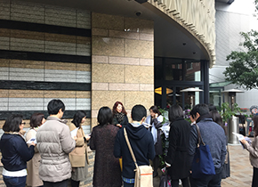 日本人には、とにかく人気のある「印象派」時代の画家たち。なぜそこまで我々の心を打つのだろう?なんていう思いがいっぱいで、早くも作品が見たくなってきますね。 いよいよ美術館へ入場!のタイミングで、他の超大型団体さまもご入場の予感!これは、混みそうです。。。 |