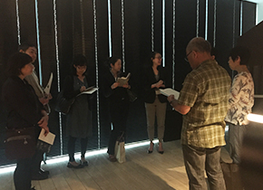 LABOはファシリテーター山内さん、メンバー6名、見学者1名、事務局1名で、山内さんセレクトの3箇所のギャラリーを訪れました。 ■銀座LIXILギャラリー ■ポーラミュージアムアネックス ■奥野ビルGalley Camellia
