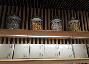 スタッフの能條さんに解説をしていただきました。 近年、特に台湾や中国では良質の画材が手に入りにくくなり、ならば、ということで高品質で貴重なメイドインジャパンの製品を数多く扱っていること。 日本画の初歩や支持体や溶剤に関する講座等を開設するために、スタッフは全員製品に関して適切な説明ができること。画材を通し作家をサポートすること。 そのためキャンドル作家や陶芸家など想定外のジャンルの方々も来店し、逆に驚いたこと。など、興味深いお話をしていただきました。 アート全体について考えるとき、画材にも目を向けることは必要不可欠であり、これからは重要な課題の一つになるのではないでしょうか。 店内には高級画材のほかにも手ごろな顔料や筆などもおいてあり、試し書きができるコーナーも在りました。これから日本画など描き始めようとする方にもおすすめです。