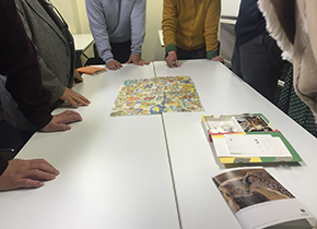 後半は日頃よく訪れている美術館の「裏側」についての説明ですが、前半の座学の講義に多少疲れてきたところですので、気分を変えてメンバーが二組に分かれ「美術館すごろく」に興じることとなりました。