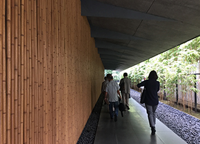 10月のART LABOはオシャレな街、南青山界隈のフィールドワークです。「根津美術館」と「伊勢半本店 紅ミュージアム」を訪問しました。 まずは根津美術館に集合。鉄道王と呼ばれた東武鉄道の根津嘉一郎が創設した日本・東洋美術の殿堂です。現在の建物は2009年、建築家の隈研吾によって新装されたもので、「屋根と庇」をテーマに日本の風土に根ざした表現を取り込んだ独特の造形です。 |