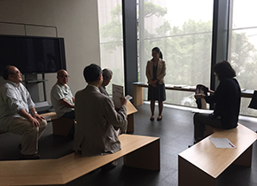 その後、美術館中二階のスペースで担当者の方に展覧会の準備などについてお話しを伺いました。同館は7,420点(平成28年3月)と膨大な収蔵品を擁しているため、年7回の企画展は殆ど収蔵品中心で実施でき、わずかなインターバルの中、2日程度で集中して展示替えしているそうです(一部借用が必要な場合は、年間スケジュール立案と同時に早めに準備)。