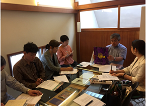 展覧会のカタログを見ながら、それぞれのカテゴリの作家たちとその作品を多く紹介していただきました。 また、現地で取材した時のことなど、非常に興味深いお話もたくさん伺いました。 私たちはアフリカと聞くとどこまでも続く砂漠や、未開な部族が多く存在し動物などの自然と共に生きている、というような乏しいイメージしか持たない場合がほとんどですが、アートや美術を通してアフリカの様々な側面を知り、知ることを通してまた、遠く離れた日本に住む自分たちの存在を深く見つめ直すきっかけになるのではないかと感じました。 最後に清水さんの事務所近くにある学習院女子大学に出向き、そこで行われていた展示を見学しました。ベナンのアーチスト、トクダクバや、カメルーンのタイユの作品などを見ながらレクチャーを受けました。アフリカの大地に想いを馳せながら興味の尽きない時間を過ごすことができました。 |