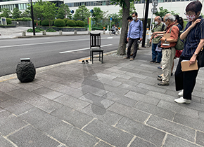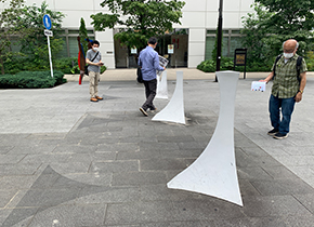 CORONAの生活はまだまだ続きそうですね。アートファンの皆さん同様、私たちラボのメンバーもしばらく展覧会ロスの日々を送っていました。 4月のラボは中止、5月はオンラインで年度の個人課題を決めたところですが、今月は待ちに待った「ファーレ立川」のフィールドワークです。リアル再会を喜びつつStay Homeの近況報告をしあうメンバー。久々にふれるホンモノの作品への期待に、みんなのウキウキした雰囲気がマスク越しに伝わって来ます。 ファーレ立川は、世界のトップアーティストによる現代美術コレクションを鑑賞できる「パブリックアートミュージアムタウン」です。オープン・エアで街歩きしながら立体作品を観る−まさにタイムリーな企画です。 はじめに、センタースクウェアにある女性総合センター・アイム1階に集合し、36か国92人のアーティストによる109作品の場所と解説がコンパクトに纏められたアートマップを見ながら【約1時間自由に個人鑑賞した後、それぞれのイチオシ作品を語りながら全員で鑑賞する】というフィールドワークの流れを確認しました。 |