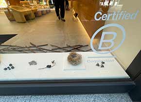 靴店「Allbirds」の店内に計14点の作品を展示した。植物をガラス壁に貼ったり、Allbirdsの靴と組み合わせることもした。Allbirds は環境への配慮をコンセプトとしており石油由来の素材は使用しないため、アクリルのケースは使用せず、ガラスのケースや商品用の紙製の箱の中に作品を展示した。 |
