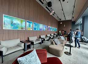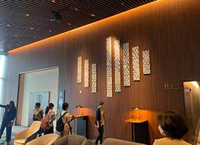 今回はフィールドワークとして、東急歌舞伎町タワーと岡本太郎記念館を訪れました。 最初に訪れた東急歌舞伎町タワーは、施設内に百数十点の作品があります。まずはその9-10階に入る「109シネマズプレミアム新宿 」で、竹中美幸氏の《ミラノ座の記憶》を鑑賞しました。 |