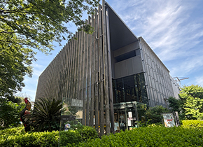 6月のラボは、世田谷区上用賀にある東京農業大学「食と農」の博物館へのフィールドワークでした。 梅雨入り前の不安定な天気が続いていましたが、この日は幸い雨にも降られず、メンバーも皆初訪問の博物館に期待を膨らませて集合。 エントランスで出迎えてくれたのは、タイの闘鶏「ナレースワン大王鶏」の巨大な像。 建物は、隈研吾氏の設計によるものです。 この博物館は2004年に開館。1・2階が展示スペース、3・4階は非公開の進化生物学研究所です。 概要説明を受けたあと、各自自由に見学し、最後に感想を共有しました。 |