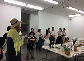 アーツ千代田 3331での持ち寄り式交流会は、ART TRANSITの交流会年に6回あるうちの2回(6月と12月)に実施ていますが、どうしても座りっぱなしとなるレストラン施設での交流会と異なり、みなさま自由に色々な方とお話しできる魅力があります。