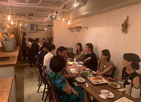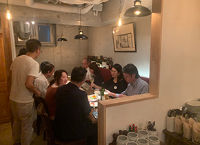 お店のレイアウト上、2班に分かれてのお席となってしまいましたが、それぞれのテーブルで、楽しくアートを中心に広がるさまざまな話題で大盛り上がりいたしました。 そのほとんどが、2次会(と言っても同じお店にて延長交流会のような感じとなりました)にまでお残り頂き、かなり熱く楽しいアートの話題に花が咲き続けました!! お料理も大変丁寧で美味しく、交流会の拠点として定期的にまたお邪魔したいと思います。 その時は、半立食形式に渡来したいと思っております。 |