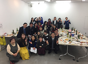 2017年12月7日(木) 12月大忘年会 レポート 「3331アーツ千代田」のスペースにて、皆さまの持ち寄り式の立食での忘年会でした。 芸大生の卒展制作というイベントもあり、大盛り上がりの交流会でした!! |